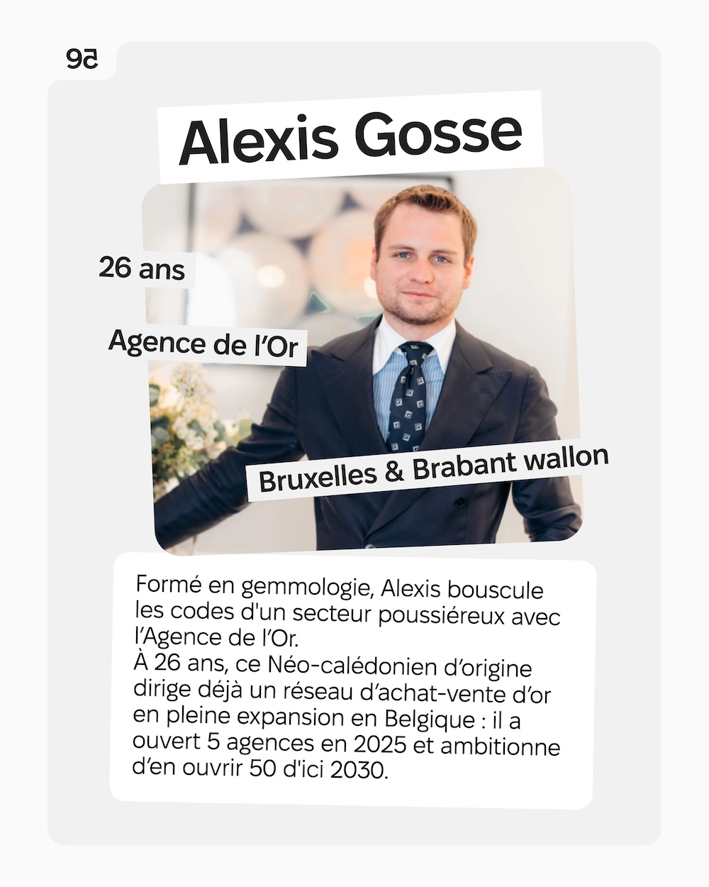 À 26 ans, ce Néo-calédonien d'origine bouscule les codes de l'achat-vente d'or avec l'Agence de l'Or. Après avoir ouvert 5 agences en 2025, il affiche une ambition claire : un réseau de 50 agences d'ici 2030.