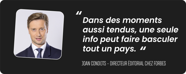 En tant que responsable du pôle économique au Soir, j’ai dû prendre des décisions cruciales, parce qu’une mauvaise information pouvait vraiment mettre en danger l’économie belge. La pression était énorme, et c’est là que j’ai réellement pris conscience du poids de mes responsabilités. Au quotidien, on ne va pas se le cacher, on le sent déjà, mais dans des moments aussi tendus, ça devient encore plus flagrant : une seule info peut faire basculer tout un pays.