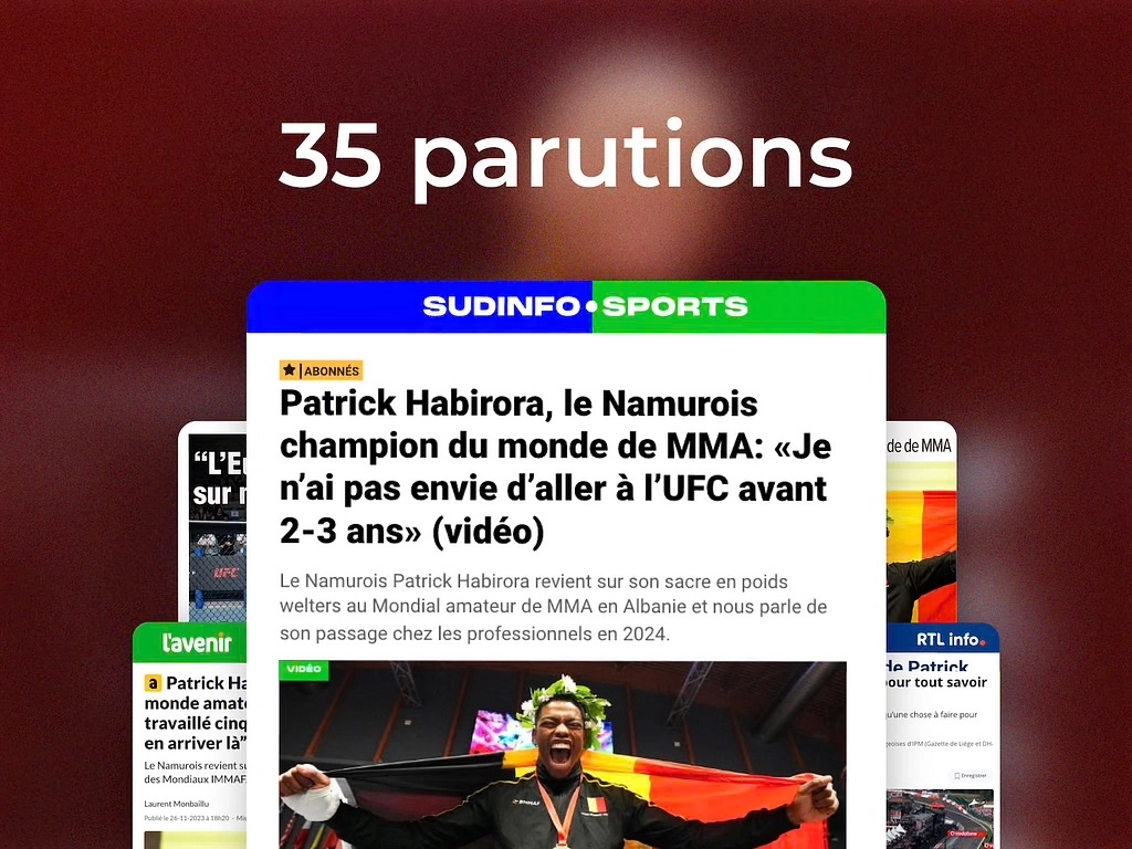 Patrick fait partie des jeunes talents que nous voulons soutenir à l’agence. Afin de lui offrir une exposition médiatique à la hauteur de ses performances, nous avons mis en place plusieurs journées promotionnelles lui permettant d’exposer son parcours dans la presse. Et en un rien de temps, il est devenu le chouchou des médias, entre RTL, la RTBF, L'Équipe, Le Soir, La DH, L'Avenir, etc. et même Brut et Canal+, du côté français.
