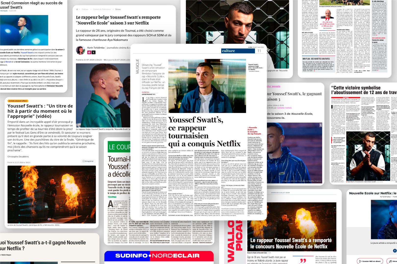 Du haut de ses 27 ans, le rappeur belge Youssef Swatt’s compte déjà plus de 10 années de carrière dans le monde de la musique. Après 3 albums, l’animation de nombreux ateliers d’écriture, une performance à TEDx Brussels et des concerts dans tous les pays francophones, le rappeur a remporté en juillet 2024 la saison 3 de la série « Nouvelle École », diffusée sur Netflix. Depuis 2020, nous travaillons ensemble sur sa visibilité médiatique.